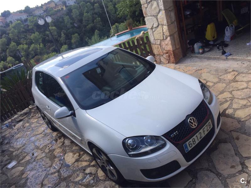Golf v gti con todos los extras; navegador, techo solar, asientos de piel calefactables, sensor aparcamiento, llamtas detroit 18.. coche muy cuidado, siempre en garaje. Lo vendo ya que me voy fuera a vivir. No acepto cambios.