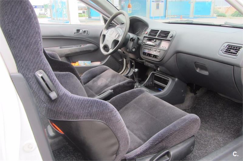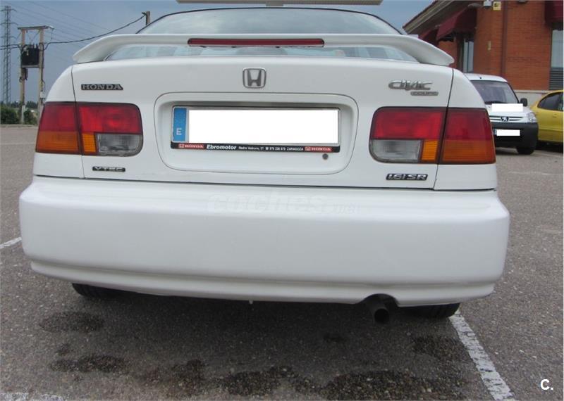 Honda Civic coupe 1.6 sr VTEC 125 cv. Alerón de serie Honda, radio CD con cargador de 6 CDs Honda, asientos deportivos semi-baquet, retrovisores eléctricos, ABS, airbags conductor y pasajero, elevalunas eléctricos, antinieblas delanteros Honda. Tiene todos los mantenimiento hechos, único propietario, siempre en garaje. Los neumáticos están nuevos, tienen menos de un año. Embrague recién cambiado en enero de 2017. ITV hasta agosto de 2018. Contactar vía telefónica o por Whatsapp por la tarde, gracias.