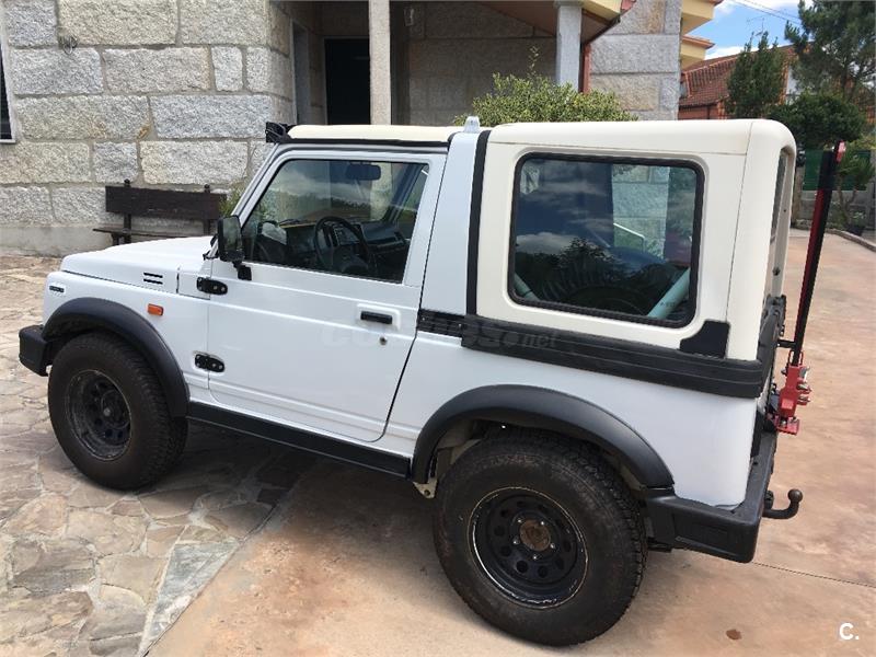 1.3 inyección, 1998, 95000 km, recién pintado, ITV recién pasada, al día de aceites, frenos, etc, está impecable, reductora de 1000 y autoblocante trasero Yukon Spartan, parrilla led 240w y bombillas led, gemelas +5, neumáticos nuevos 215-80-15 con llanta desplazadas 3cm, asientos de Swift GTI, gato high lift, gancho remolque, barra antivuelco original con cinturones traseros, doy otro juego de llantas con neumáticos, snorkel ( sin colocar ), caja de cambios y reductora de 1.3. Con seguro hasta mayo de 2018.
