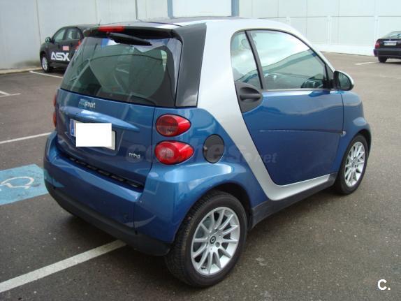 Oportunidad. Particular vende Smart Fortwo coupé acabado Passion de 71 cv. Cambio automático y secuencial. Tiene Bodypanels en azul metalizado Radio Smart Radio Nine. Matriculado el 21 de Mayo de 2009 con tan solo 23.600 kms. Revisiones en Mercedes. ITV recién pasada hace una semana