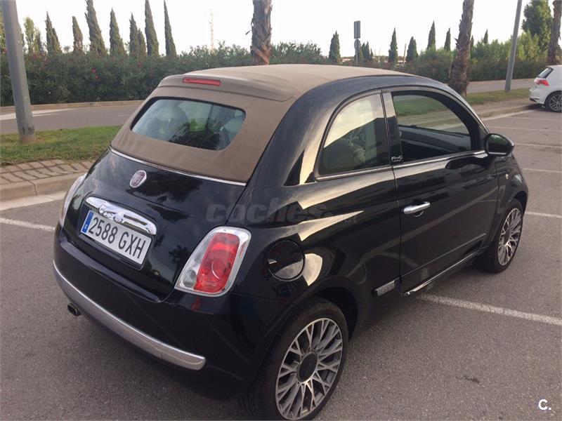 Fiat 500c 1.2i 69cv Cabrio del 07/2010 con 75.000km en perfecto estado. Cimatizador, Radio cd con sistema Blue&Me Bluetooth y USB Windows Media, GPS, Tapicería en piel mixta, Volante multinacional, Sensor de aparcamiento, Llantas 16", Faros antiniebla, elevalunas,cierre,etc..