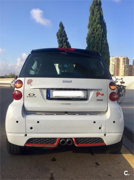 Se vende smart fortwo del 2011 con 84.000km, perfecto estado, recién hecha la revisión y pasada la itv. Lleva todos los extras, levas en el volante, dirección asistida, GPS, manos libres, sensor trasero de aparcamiento, reposabrazos, parachoques trasero Brabus.