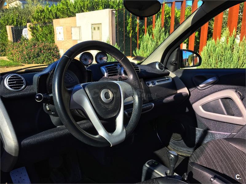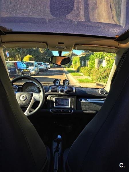 Smart Fortwo paquete Brabus, pintura mate y brillo en contraste y llantas, antena radio carbono, tapicería cuero y tela, automático con levas en el volante, bluetooth para teléfono y música, radio cd con navegador, reloj y cuentarrevoluciones en el salpicadero, apertura maletero electrónica, luces antiniebla, desactivador airbag copiloto para portar silla bebé, dirección asistida, techo panorámico. Todas las revisiones en casa oficial Mercedes Benz con libro al día.