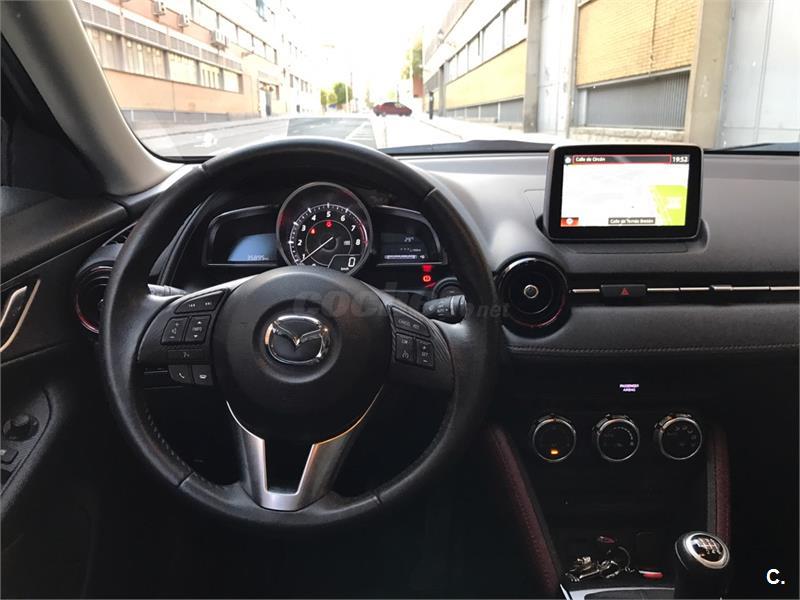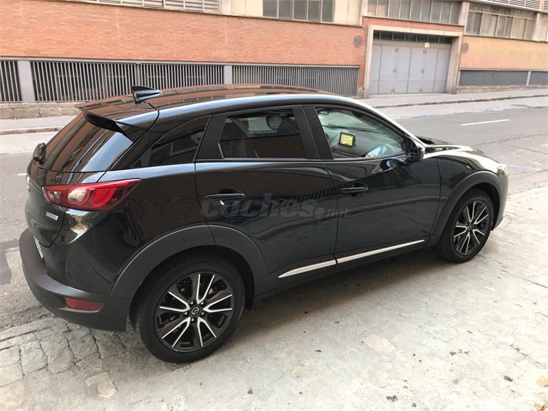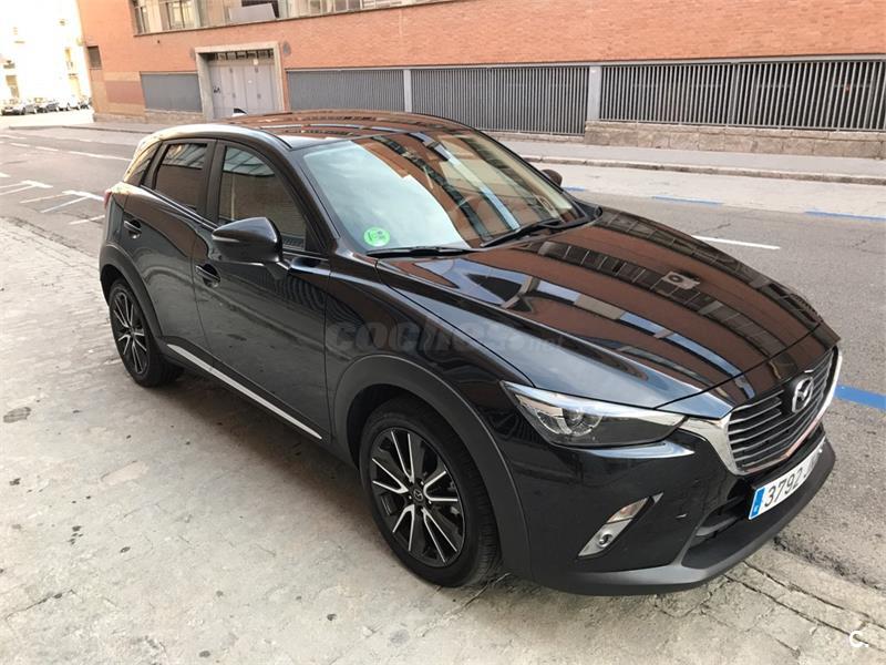 Vendo MAZDA CX-3 negro comprado el 13 Nov 2015 con menos de 36.000Km, gasolina y manual de 6 velocidades. Es la gama LUXURY que incluye todos los extras posibles como navegador, cámara trasera, sensores automáticos de luz y lluvia, retrovisores abatibles, asientos de cuero, Head up display (HUD), etc... El coche está en perfecto estado como se aprecia en las fotos aunque se puede ver sin compromiso. Todavía le quedan 2 revisiones anuales gratuitas más 4 años de garantía. Lo vendo por qué necesito un coche más grande. Para más fotos o detalles no dudéis en contactar conmigo. Precio negociable si la oferta es razonable. Gracias
