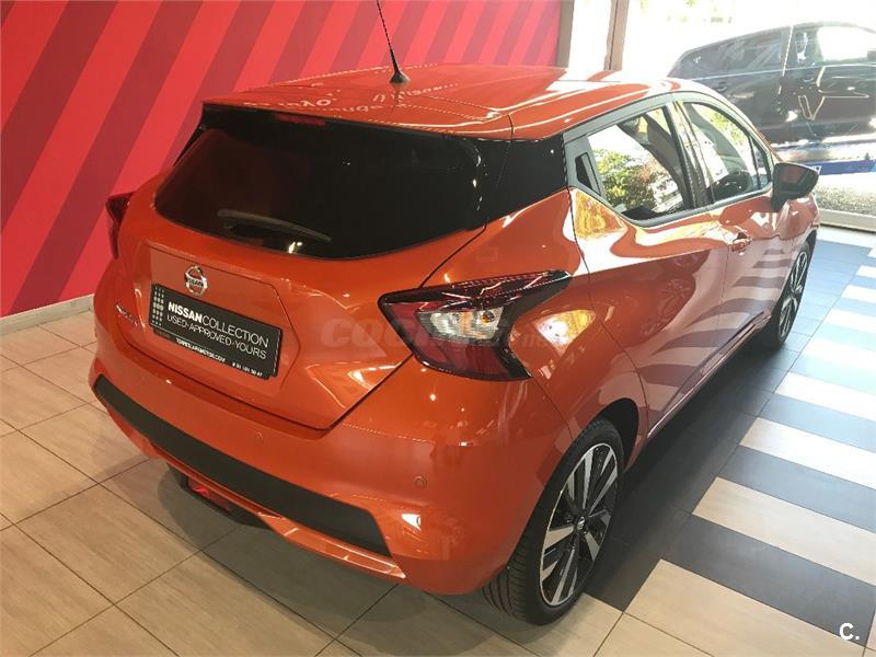 Vehículo con 36 meses de garantía oficial Nissan desde fecha matriculación. Navegador con pantalla táctil, cámara de aparcamiento trasera, Interior Energy Orange, alerta cambio involuntario de carril, llantas de aluminio de 17 pulgadas, climatizador, encendido automático de luces y limpiaparabrisas, radio CD/MP3 con entrada USB/AUX y manos libres Bluethooth, ordenador de abordo, limitador y control de velocidad, etc... Precio ofertado condicionado a financiación (Consultar condiciones)