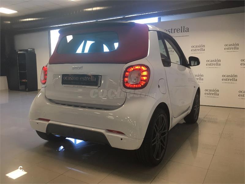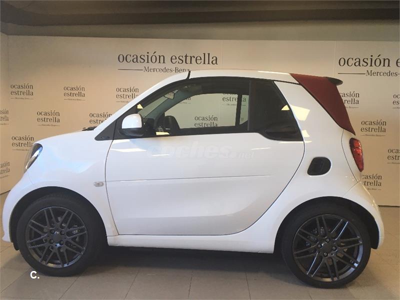 Smart fortwo cabrio 90cv TURBO AUTOMATICO con Paquete Brabus. Extras: Acabado Passion, Celula Tridion en color Blanco, Capota en Tela roja, sensores de aparcamiento trasero, difusor de viento, Apoyabrazos delantero abatible, P. Deportivo BRABUS con levas de cambio en volante, llantas BRABUS de 16"/17", tren de rodaje deportivo BRABUS, altura rebajada 10mm, faldon del/tras con difusor BRABUS, Paquete Confort con asiento y volante regulable en altura, espejos electricos y calefactados, Paquete led&sensor: sensor de lluvia y luces, iluminación trasera de leds y delantera de fibra óptica, Techo panoramico, reloj/cuentarrevoluciones y deposito 35 litros. Grupo Louzao, 40 años de experiencia en la venta, mantenimiento y postventa de vehículos Mercedes Benz&Smart. Garantia oficial 24 meses desde fecha de matriculacion. Consulte condiciones de financiación sin compromiso. IVA deducible. Recogemos vehículo usado a cambio.