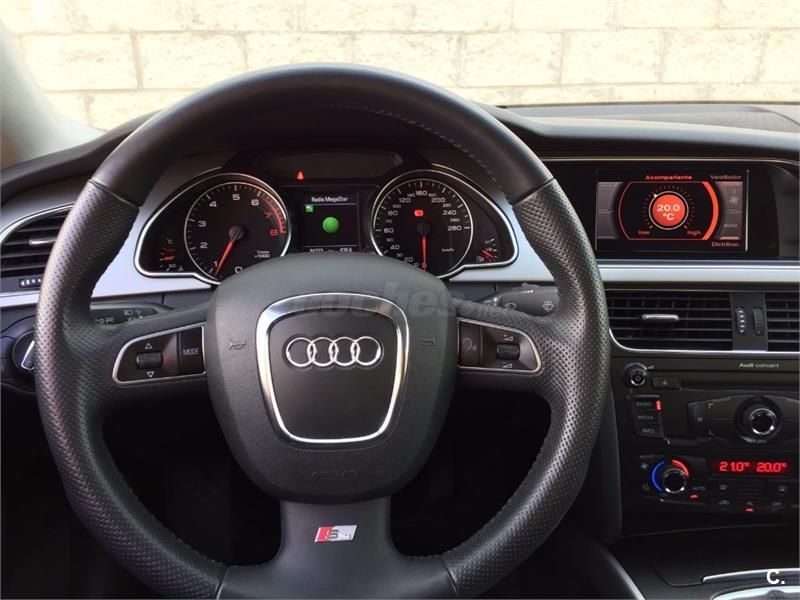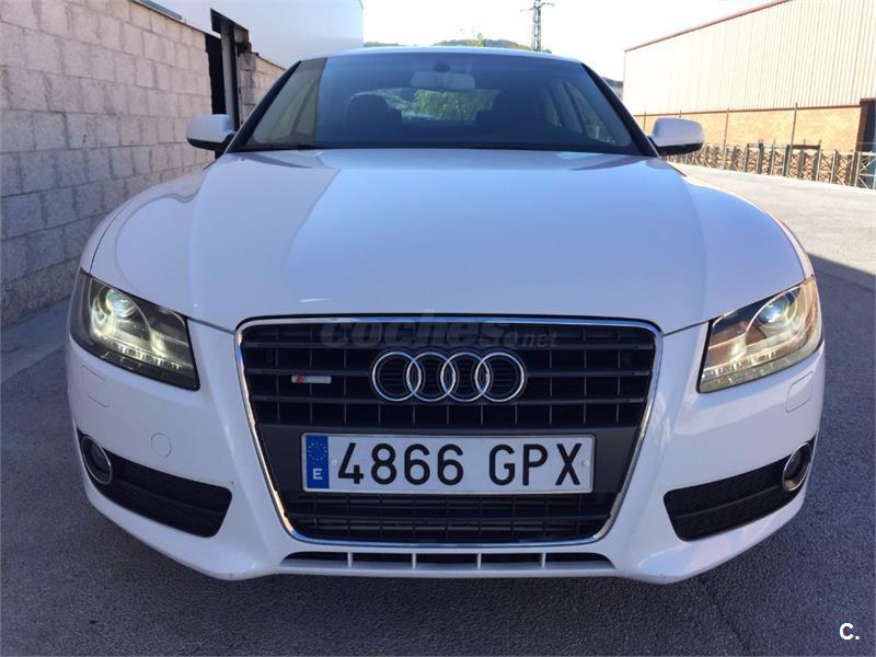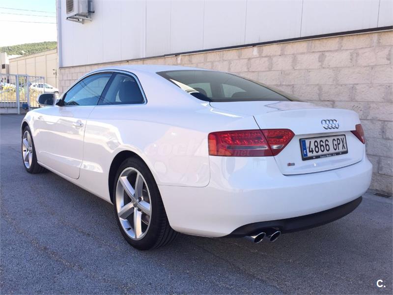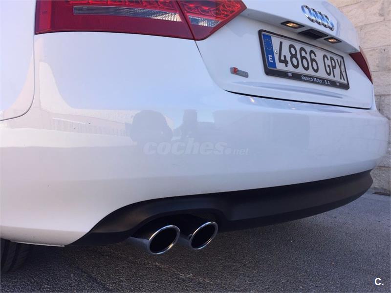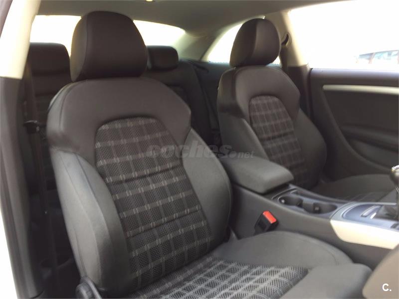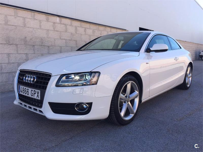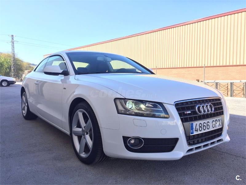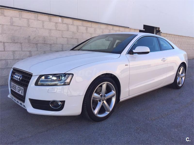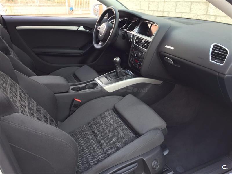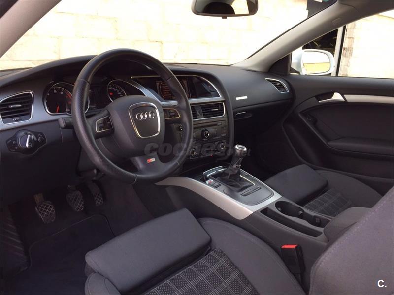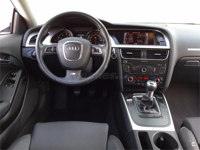Audi A5 Coupe 2. 0 TFSI 180cv Sport-Plus 6 velocidades. Vehículo nacional , procedente de único propietario particular particular para uso privado, con 81. 000 kms reales y demostrables con histórico completo de revisiones. Perfecto estado general de mecánica, interiores y carrocería, nunca golpes ni accidentes. Equipado con climatizador automático bizona, faros bixenon y pilotos traseros de tecnología LED, sensor de luces y lluvia, asientos deportivos, asientos traseros abatibles, radio CD Mp3 con conexión auxiliar y lector de tarjeta SD, reposabrazos, Control de tracción y estabilidad, Asientos traseros abatibles, llantas de aluminio S-Line. Se entrega revisado y verificado, 12 meses de garantía y cambio de nombre incluido.
