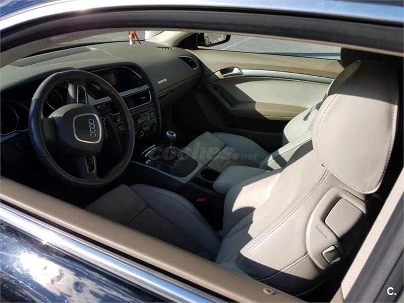 Audi A5 3.0 TDI quattro en perfecto estado tanto exterior como interior. Tapiceria piel/alcantara crema muy bien cuidada. Faroz bi-xenon con luz diurna con labafaros. Alarma. Partronik trasero. Volante multifuncion. Apoyabrazos delantero y trasero. Lunas traseras tintadas de derie. Control de presion de neumaticos. Neumaticos al 80 con cambio de aceite y filtros recien hecho para su venta. Itv hasta 2/2019.