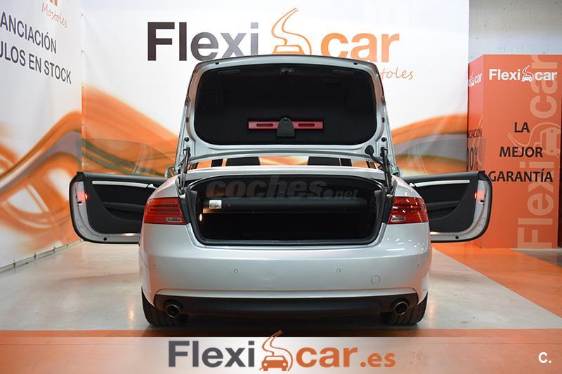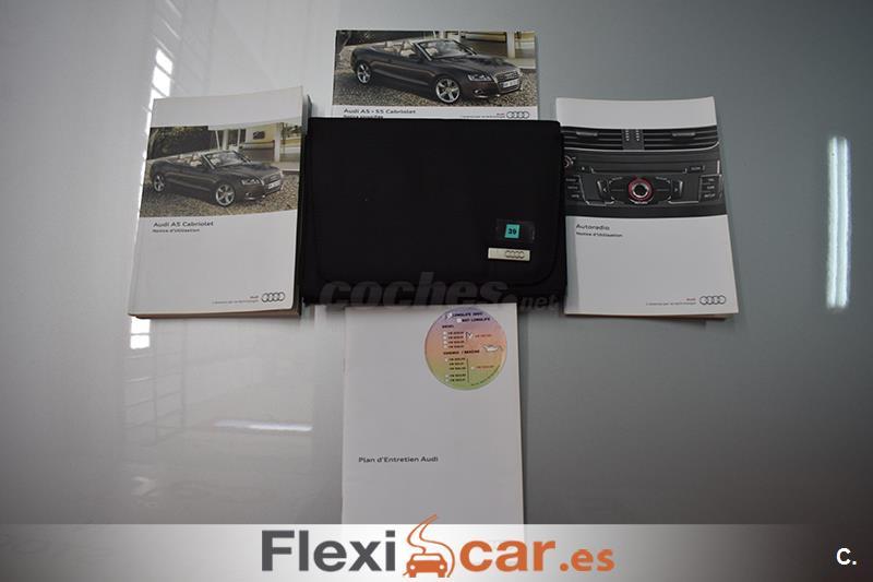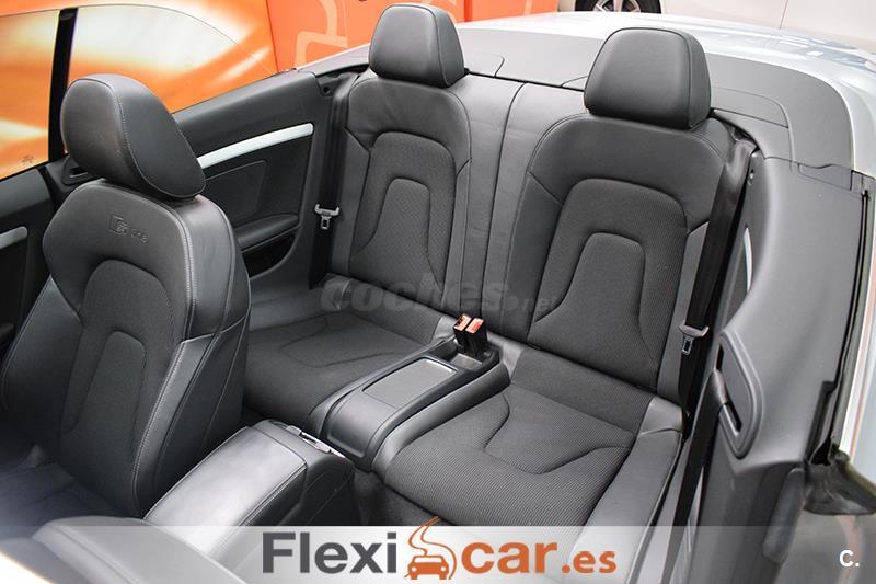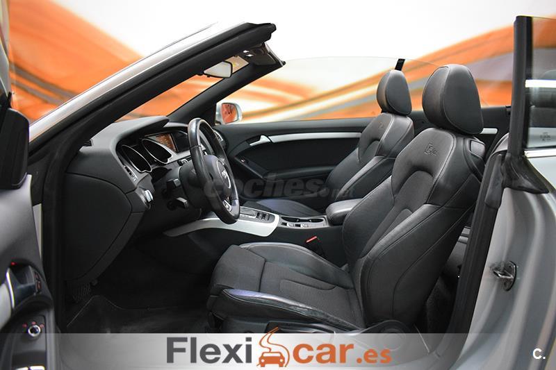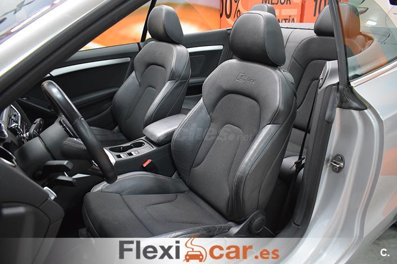 Vehículo cabrio 2 puertas en perfecto estado equipado con cambio automático, dirección asistida, volante multifunción de cuero S LINE, elevalunas y espejos retrovisores eléctricos calefactables, Asientos Deportivos S LINE Tela Sprint/Cuero Negro con regulación eléctrica con memoria, sensor de luces y lluvia, control de velocidad, radio CD-SD, Audi Music interface, Instalación básica manos libres (Bluetooth) para teléfono móvil, sistema de aparcamiento Audi parking system, cierre centralizado, llantas de aleación S LINE, faros de xenón, luces antiniebla, libro de mantenimiento... Financiación 100% a su medida. Aceptamos coches como parte de pago (Previa tasación). Garantía Flexicar (Consultar). Este anuncio no es vinculante y puede contener errores, se muestra a titulo informativo y no contractual