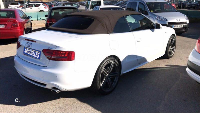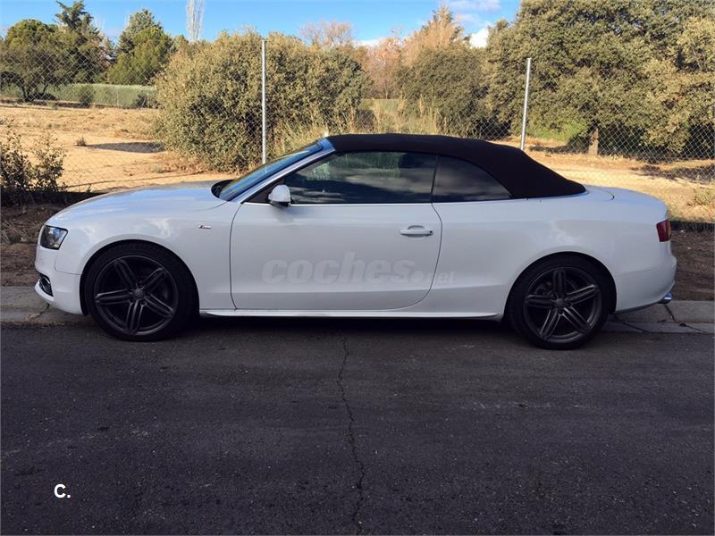 Vehículo con un equipamiento único costando nuevo más de 80.000 euros, paquete deportivo S-line exterior, tapicería de cuero Nappa con asientos deportivos, sistema de navegación MMi, equipo de sonido Bang & Olufsen, asientos eléctricos, faros de xenon con lavafaros y LED diurnos, asientos delanteros con calefacción, llantas de aleación 19" audi exclusive, sensores de aparcamiento delanteros y traseros junto con cámara de visión trasera, entrada y arranque sin necesidad de llave, dirección dinámica, climatizador bizona, bluetooth, capota marrón, volante multifunción, ordenador de viaje, conexión AUX, sensor de lluvia y de luces, lunas tintadas traseras, retrovisores abatibles eléctricamente, ordenador de viaje, preparación isofix, radio digital DAB, inserciones en madera raíz de nogal, alarma antirrobo, control de presión neumáticos. CONSULTAR LISTADO COMPLETO DE EXTRAS