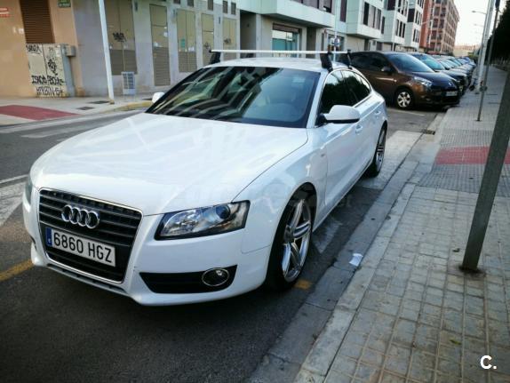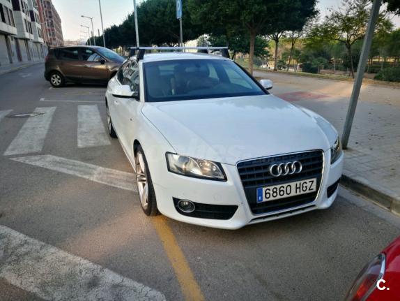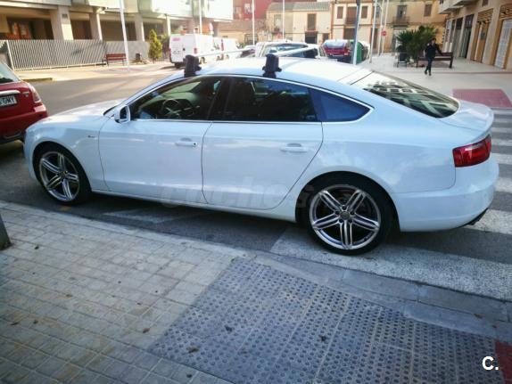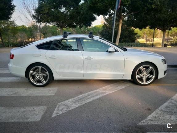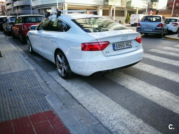 Audi A5 Sportback 2.0 TDI 170 CV con equipamiento SLine. Matrículado en noviembre de 2011. Vehículo nacional. Un único propietario. 125.000 km. Libro de mantenimiento en concesionario oficial Audi. ITV en vigor hasta noviembre de 2019. Última revisión recién hecha. Neumáticos delanteros nuevos y los traseros en muy buen estado. Llantas de 19".Vehículo sin siniestros demostrable. Sistema StartStop. Climatizador bizona. Sensor de aparcamiento. Control de velocidad. Asientos deportivos SLine tela-piel con masaje lumbar.