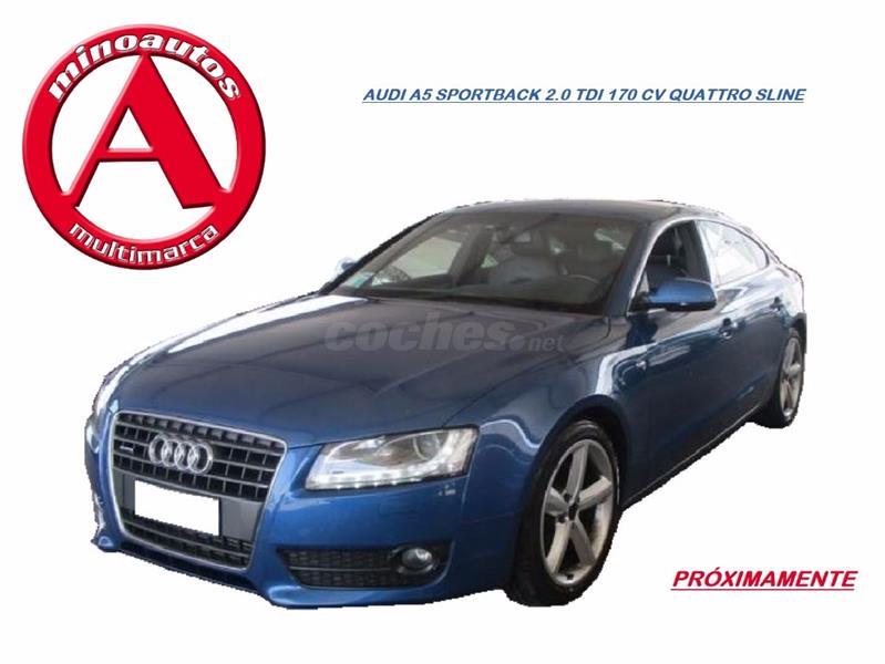 ¡MinoAutos! Empresa lider del sector con mas de 150 vehículos en stock vende Audi A5 SportBack 2.0 TDI 170 CV Quattro SLine. Vehículo de único propietario que cuenta con historial de mantenimiento en servicio oficial y certificación de KM. Equipa: Pintura metalizada, Navegador, Climatizador, Start/Stop, Control de velocidad, LED, Faros Bixenon, Asientos electricos, Asientos deportivos, Tapiceria Mixta con cuero, Manos Libres/Bluetooth, Control por voz, Llantas, Suspension deportiva, Gancho de remolque, Luz Diurna, Faros antiniebla, 4x4, Freno de mano electrico, Volante deportivo multifuncion en piel, Radio CD/MP3, Elevalunas electricos, Cierre centralizado, etc. El precio incluye transferencia, mantenimiento, limpieza integral y 1 año de garantía en servicio oficial sin límite de KM, ampliable hasta 2 años. Se entrega totalmente revisado. Se acepta prueba mecánica. Mejor ver. Visitanos sin compromiso en Roxos, carretera Santiago-Noia, Km 3. (minoautos.es)