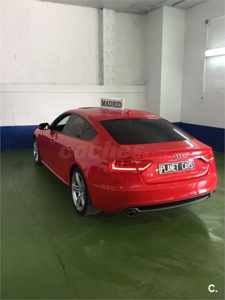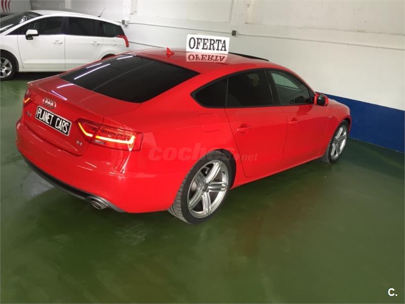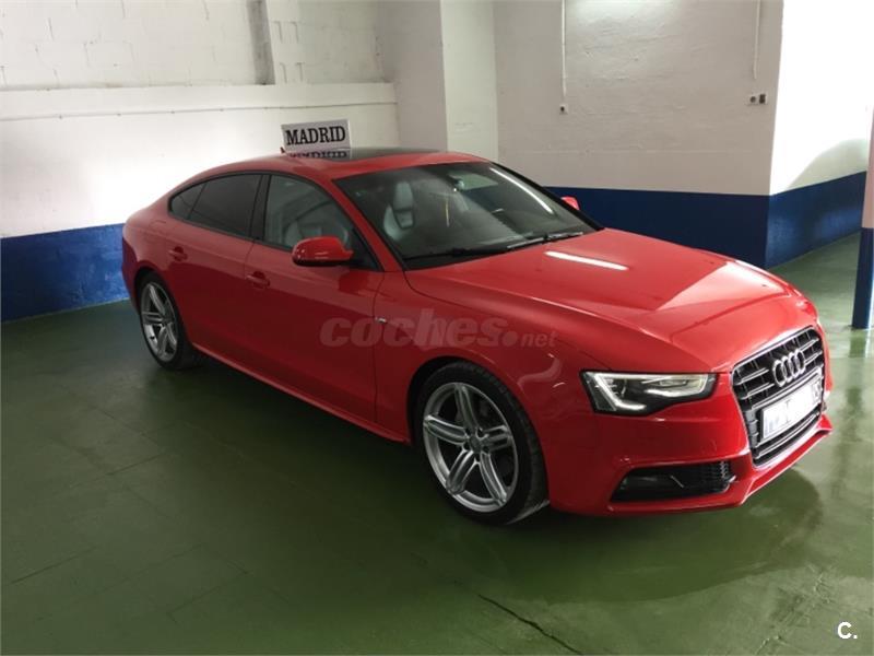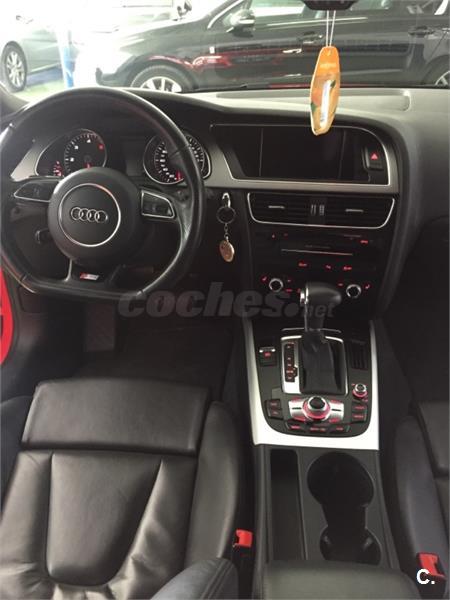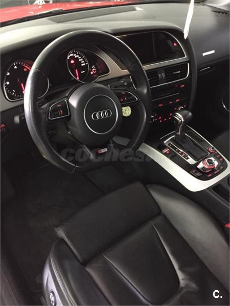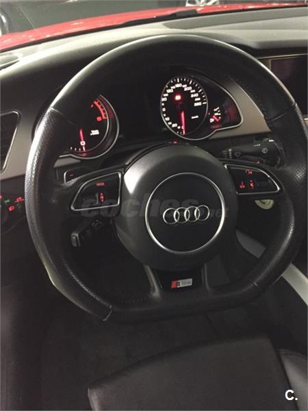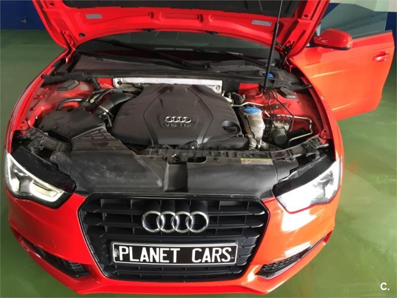 Vehículo con mas de 22. 000euros en extras Audi A5 3. 0 TDI Sline+ interior RS, bajo consumo con extras. Techo panorámico eléctrico, gps navegador profesional 3d, asientos cuero califactables con isofix, suspension deportiva, control de voz, sonido de música profesional Bang Olufsen, con lector tarjeta memoria y wifi, bluethooth, llantas de aleación 19plugadas, sensor de aparcamiento, limitador de velocidad, sensor de presión de neumáticos, piloto automático, sensor de luces y lluvia , alarma , espejos plegables eléctricos calefactables, volante multifuncion. Sistema de calefacción con mando para poder accionarlo desde casa. Lunas tintadas de fabrica, color rojo Ferrari.