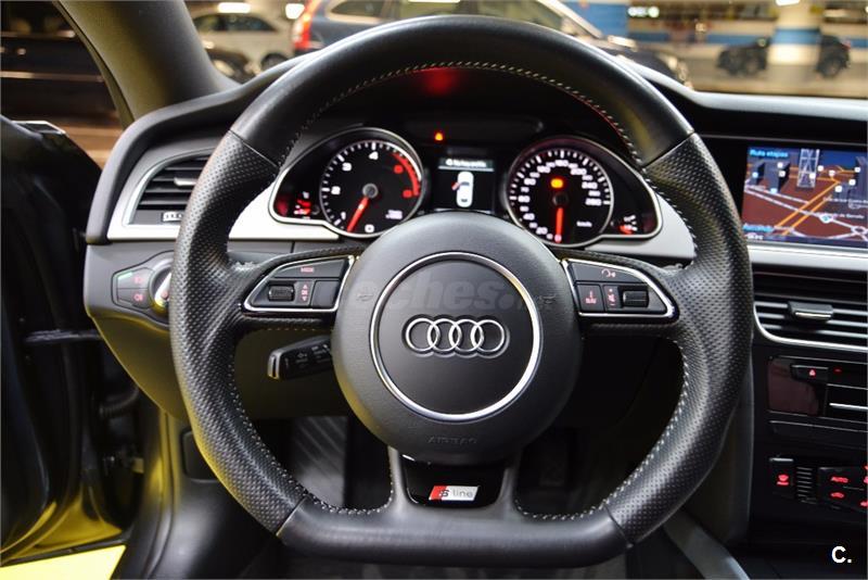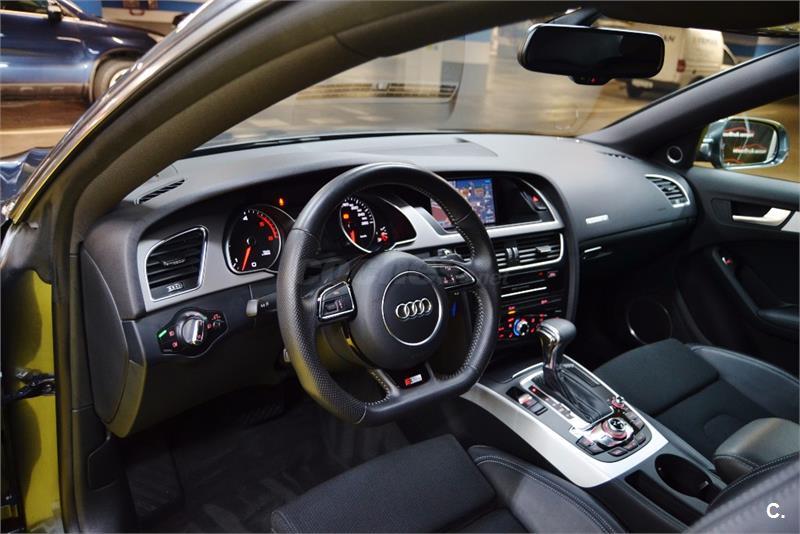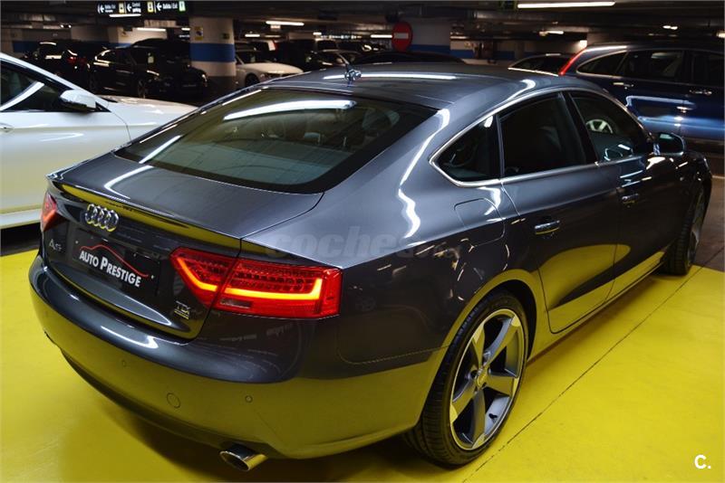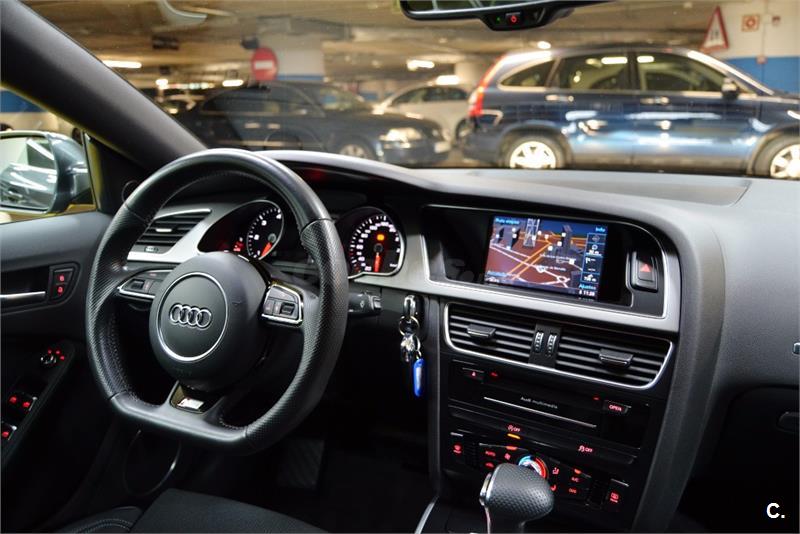 AUDI A5 Sportback Quattro 3.0 TDI 245 CV Stronik S-line Edition-5Plz -Año:06.2014-Mantenimiento Oficial Km Certificados,Libro Mantenimiento,Revisiones Oficiales!!:Equipado y Configurado con:Sistema Sonido,PAQUETE S-LINE,Faros Led,Cambio Automático Deportivo,4X4,Led,Asientos Deportivos Calefactables S-line,Suspension Deportiva S-line,Navigation Profesional 3D,Volante Deportivo Multifunción S-line,Tapiceria Cuero Exclusive Mixto,Sensor Luz y Lluvia,Sensor Aparcamiento,Llantas Deportivas 19",Reproductor cd s,Telefono,Dvd Multimedia Player,Conexion Usb y Aux,Sistema ISOFIX,Cierre Centralizado,Elevalunas Electricas,Abs,Climatizador Bi-zona.Como Se Puede Apreciar En El Reportaje Fotográfico Su Estado es IMPECABLE Interior/Exterior--Entregamos Los Vehículos En Perfecto Estado--Aceptamos Cualquier Prueba En Su Taller De Confianza/Servicio Oficial-
