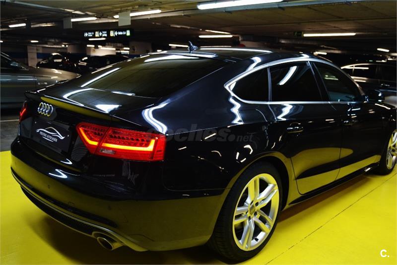 AUDI A5 Sportback Quattro 3.0 TDI 245 CV Stronik S-line-EXCLUSIVE Edition-5Plz -Año:11.2013-Mantenimiento Oficial Km Certificados,Libro Mantenimiento,Revisiones Oficiales!!:Equipado y Configurado con:PAQUETE S-LINE,Faros Led,Cambio Automático Deportivo,4X4,Led,Asientos Electricos Calefactables Deportivos S-line,Suspension Deportiva S-line,Navigation Profesional 3D,Volante Deportivo Multifunción S-line Levas,Camara Trasera,Tapiceria Cuero Exclusive,Sensor Luz y Lluvia,Sensor Aparcamiento,Llantas Deportivas 19",Reproductor cd s,Telefono,Dvd Multimedia Player,Conexion Aux,Sistema ISOFIX,Cierre Centralizado,Elevalunas Electricas,Abs,Climatizador Bi-zona.Como Se Puede Apreciar En El Reportaje Fotográfico Su Estado es IMPECABLE Interior/Exterior--Entregamos Los Vehículos En Perfecto Estado--Aceptamos Cualquier Prueba En Su Taller De Confianza/Servicio Oficia