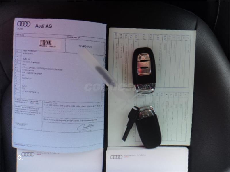 Audi music interface, Audi parking system plus, C?ara de visi? trasera, Climatizador autom?co de cuatro zonas, Con COC, Con Ficha Técnica, Con Libro de Mantenimiento, Con Permiso de Circulación, Con segunda llave, Cortinillas laterales y posterior, Dep?ito de combustible de 75 litros Espejo interior antideslumbrante autom., Espejos retrovisores con funci? memoria, Inserciones en aluminio, Paquete Comfort, Paquete iluminaci? exterior e interior, Paquete portaobjetos, Paquete t?nico y navegaci?, Pintura metalizada, Sin tornillo antirobo neumáticos, Sistema de sonido BOSE Surround, Tapicer? en cuero Milano, Viat - Pago peajes c/c - Telepeaje, _ABS, _Cierre centralizado, _Climatizador, _Control de velocidad, _Dirección asistida, _Elevalunas eléctricos, _Faros de Xenon, _Llantas de aleación, _Navegador, _Ordenador de a bordo, _Pintura metalizada, _Radio CD, _Sensor de parking, _Tapicería de cuero, _Teléfono Móvil, _Tracción a las 4 ruedas (4x4), _Transmisión automática, _Volante multifunción