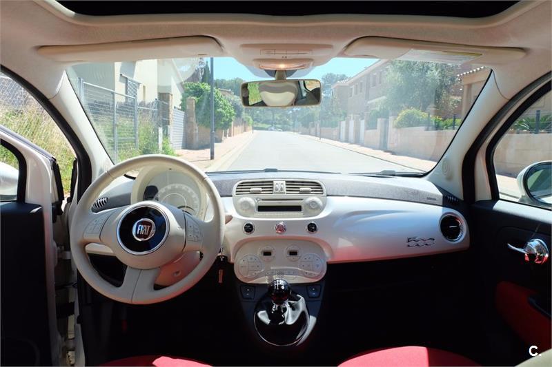 Fiat 500 Lounge 69cv 1. 2 Blanco perlado, techo panorámico, volante multifunción, manos libres, bluetooth con conexión para el móvil, asientos rojos. Revisiones al día.