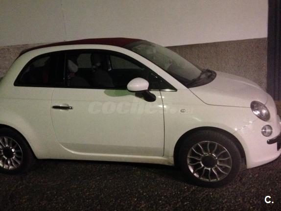 Fiat 500 cabrio blanco con llantas de aluminio, faros antinieblas delanteros, tapicería en cuero y tela con asientos deportivos, volante en cuero blanco, eleva lunas y techo automático. No cambio, solo vendo