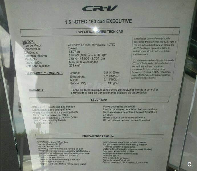 Se vende Honda CR-V totalmente nuevo por aumento de familia. Todas las revisiones en Honda, aporto facturas. Totalmente nuevo, con un único dueño. Si desea más fotos por privado.