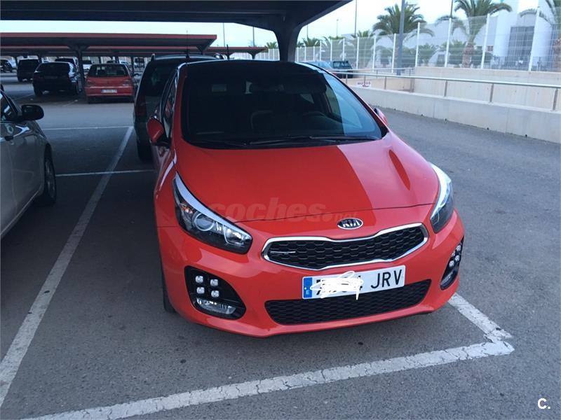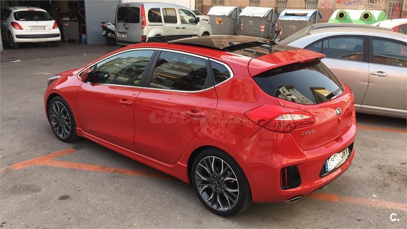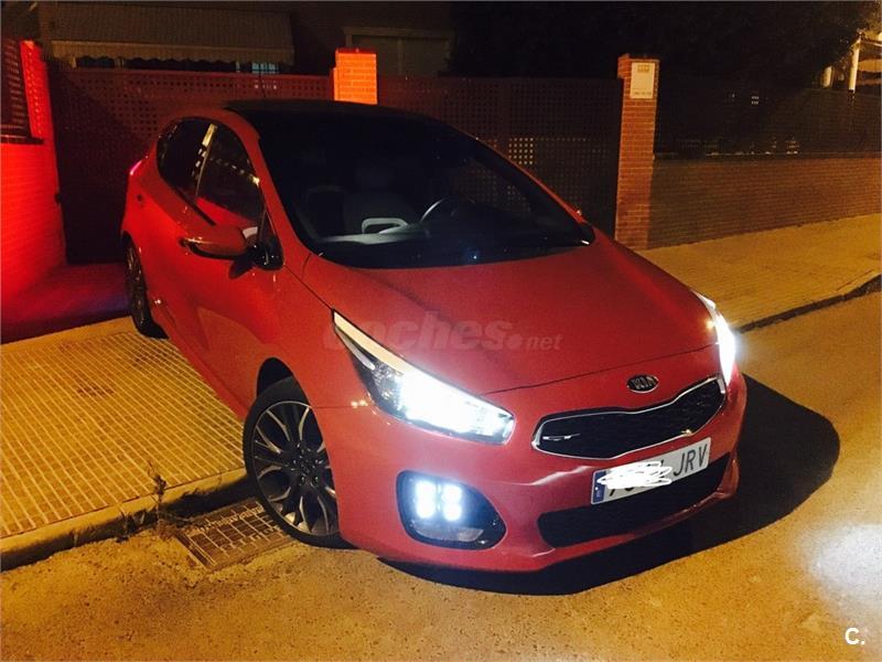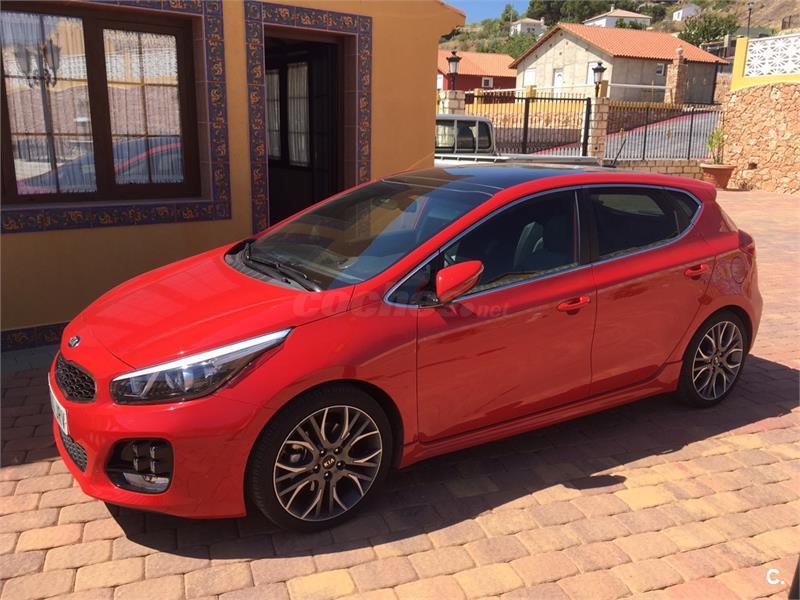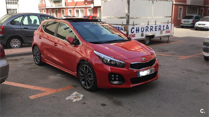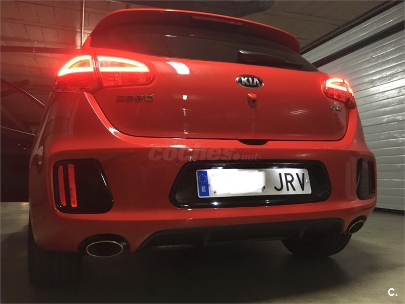 Extras paquete gtLine: - volante multifunción, y palanca de cambios de 6 velocidades ambos en cuero - control de crucero y limitador de velocidad - modo confort, normal, o sport que modifican la dureza del la dirección y la suspensión - luces Leds diurnas, luces y parabrisas automáticos , luz adáptativa al giro de la dirección y pilotos traseros Leds. - control de ayuda en pendiente (no se va hacia atrás al salir en una cuesta ) - parktronik trasero y cámara trasera con alta definición - pantalla táctil de 8 táctil, usb, aux, bluetooth, navegador,manos libres y wifi. - Llantas 18 (versión GT 205cv) con neumáticos Pirelli Pzero 225/40 - techo panorámico abatible y cortinilla de techo -paquete exterior GTLine -climatizador bizona -espejos eléctricos y abatibles Seminuevo En perfectas condiciones. Tapicería tela negra con bordado deportivo. Solo 35.000km. Único propietario. Dos llaves y libro de mantenimiento sellado en Kia servicio oficial