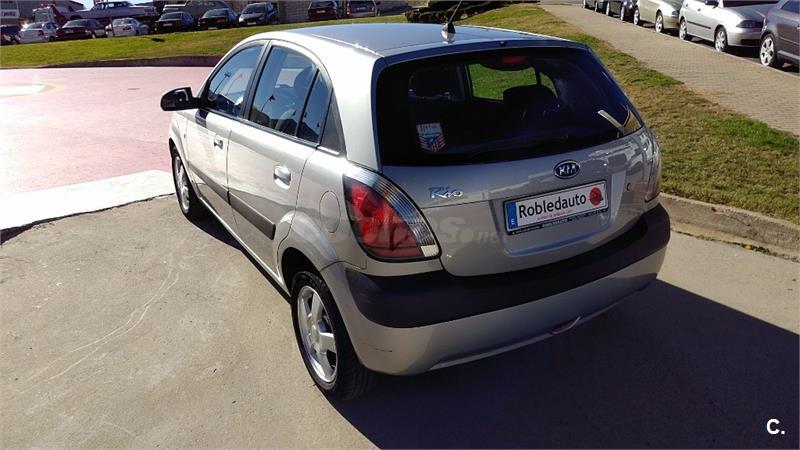 Kia Rio 1. 4 71cv, 1399cc, gasolina, 2005, 123352km, muy fiable y casi libre de mantenimiento. Equipado con ABS, airbag, aire acondicionado, cierre centralizado con mando a distancia, dirección asistida, elevalunas eléctricos, faros antiniebla, inmovilizador electrónico, llantas aleación, pintura metalizada, radio cd, retrovisores eléctricos. Es un cinco plazas con tracción delantera y motor delantero transversal de cuatro cilindros en línea producido desde agosto de 1997. Color Gris.