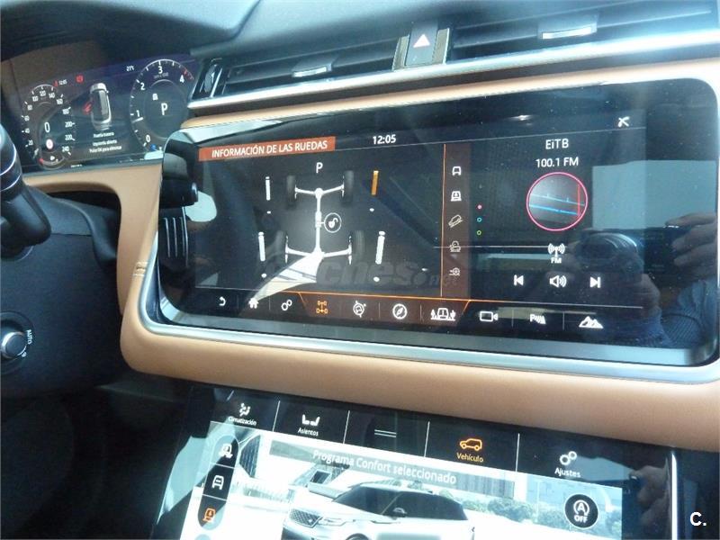 EUROLAN vende EXCLUSIVO Range Rover Velar equipado con Asientos con ajuste eléctrico con memoria en conductor y acompañante en 20 movimientos, All Terrain Progres Control (ATPC) Acabado interior en Satin Blonde Linear, Alfombrillas moqueta premiun, Iluminación interior configurable completa, Barras de techo longitudinales Gloss Black, Techo panorámico deslizante, Cristales oscurecidos "Privacy" , Head up display, Asientos en piel Windsor perforada, Premiun exterior Pack, Llanta de aleación de 21" Style 5047 y Suspensión neumática autonivelante. Consulta nuestras campañas y promociones.