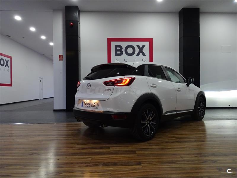Box-auto. es pone a la venta un Mazda CX3 2.0 gasolina con 120cv 4x2 5 puertas acabado Luxury con navegación. Tiene solo 4.025 kilometros Garantía oficial de Mazda hasta junio del 2020 Muy equipado, como por ejemplo Faros led, luz diurna led, sensor lluvia, sensor luz, avisador de cambio de carril, cambio de 6 velocidades, volante multifuncion, control de velocidad, cuero y tela, equipo de música Bose, display de velocidad, navegador, sensor de aparcamiento trasero
