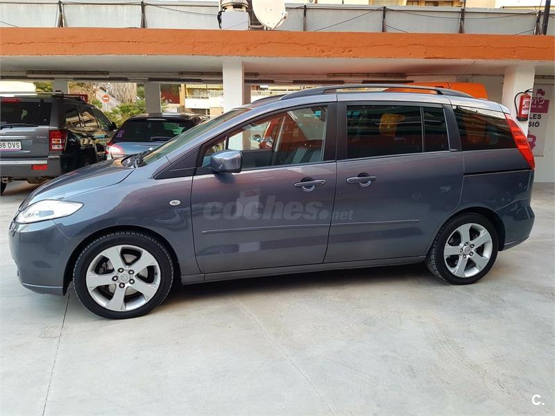 Mazda 5 matriculado el 30-05-08 con: Climatizador, 4 Elevalunas eléctricos, Bloqueo de ventanillas traseras, Puerta corredera, Limpiaparabrisas automático, Luces Xenón automáticas, Lavafaros, Regulador de velocidad, DVD en techo, Cierre automático, Baca, Volante multifunción, Arranque sin llave, 6 velocidades, Manos libres PARROT, 7 plazas, Cristales tintados, Retrovisores eléctricos, Luces antiniebla, Dirección asistida, Cierres centralizados, ABS, Airbag, Radio CD, Revisión de aceites filtros y correas al corriente.