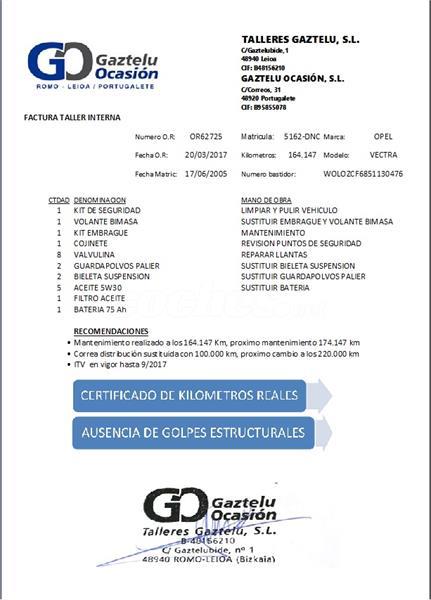 OUTLET GAZTELU OCASIÓN S.L . Coche Nacional, Historial Mantenimiento.