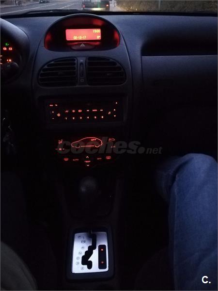 Vendo coche automático, por compra de nuevo vehículo. Peugeot 206 1. 6 XT (110CV). 2ª propietaria, coche adquirido a un particular en 2009. En muy buen estado (ver fotos). Se ha guardado siempre en garaje. Muy fácil de conducir y aparcar, ideal para ciudad o para personas que se acaben de sacar el carné. Correa de la distribución cambiada hace 10. 000km. La batería y el tubo de escape están en buen estado, se cambiaron hace poco. Igual con las bujías. El filtro de aceite se cambió hace 4000km aprox. Cambio de pastillas de freno delanteras hace 200km aprox. Averías en los últimos años: un cojinete de una rueda delantera. Ultima ITV en Septiembre de 2017. Tiene distintivo medioambiental, no se ve afectado por las restricciones que se van a producir a partir de 2020 en Madrid. Precio negociable. Se enseña el coche sin compromiso. En el barrio de Las Tablas, Madrid. Color Plata.