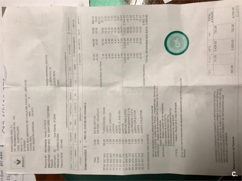 Renault laguna 1.9dci con motor con 60.000km con factura de 4000€ en Renault puesto en 2014 el coche tiene 190.000km el motor 60.000km es 1.9dci 120cv 6 velocidades,ordenador de abordo,climatizador.dos juegos de llaves con mando.UNICO PROPIETARIO itv recién pasada hasta 2018.un año de garantía tenemos tienda en carretera de Carrión número 94 auto 4x4