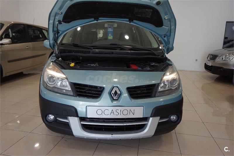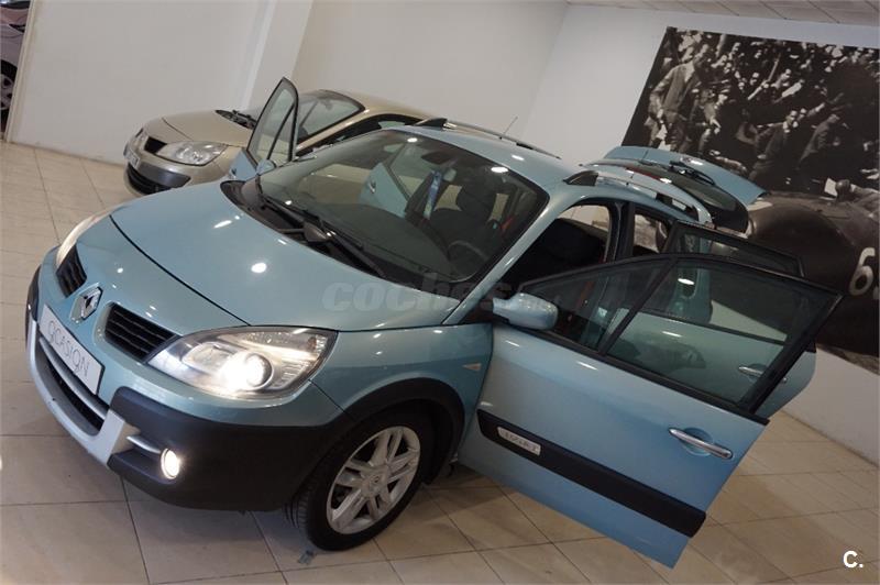 Precio con todo incluido. SIN CONDICIONES. El coche procede de cambio por coche nuevo en concesionario oficial, de uso anterior familiar. Se entrega totalmente revisado y con el con el KILOMETRAJE CERTIFICADO. Historial del vehículo CARFAX a su disposición gratuitamente. Es una versión muy especial de la Scénic, estéticamente alberga grandes diferencias con la versión convencional, su carrocería esta ligeramente sobre-elevada, sus protecciones exteriores, llantas especiales y barras de techo le confieren una estética mas próxima a un todo camino. Se comporta estupendamente tanto en pista como fuera de ella, pudiendo presumir de ciertas aptitudes en caminos en mal estado. Su equipamiento, además, es compuestísimo; climatizador digital, cosidos y cinturones en rojo (chuíisimos), ordenador de viaje, cortinillas enrollabas, control de velocidad de crucero, sensor de luces, radio-cd con mandos en el volante, faros antiniebla, bola de enganche homologada...TODO ¡¡¡VISITA igautomoviles.es!!!