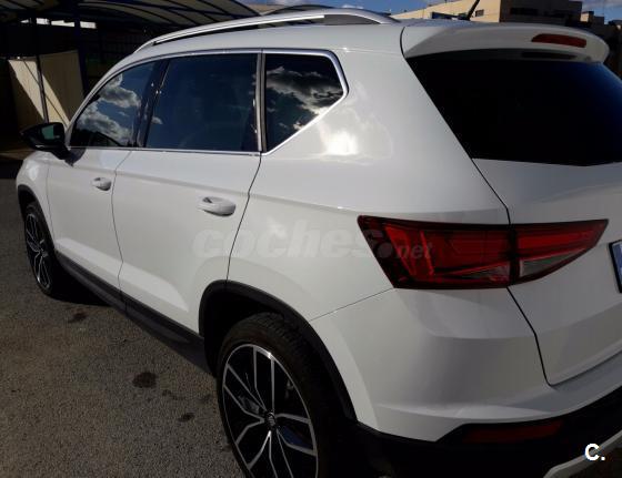 Seat Ateca Xcellence 4x4 2.0 TDI 150cv 4Drive Start/Stop,Diesel, de color Blanco Nevada (Metalizado) con tan solo 4.900 kilómetros..como nuevo.. -Barras en techo cromadas -Faros full led tanto delanteros como traseros -Luces automáticas con función de largas -Asientos cuero Alcántara -Luces ambiente multicolor -Freno de mano eléctrico -Bluetooth -Cámara de visión trasera -Llantas de 19" Exclusive Machinet con tornillos de seguridad -Espejos eléctricos abatibles y calefactables -Full Link -Control involuntario de carril -Volante multifunción en piel -Control crucero de velocidad -Climatizador bizona -Asistente de arranque en pendiente -Asistente de frenada -Botón de Start/Stop sin llave Esta como nuevo..lo vendo por tema económico..mejor ver y probar ya que consume muy poco