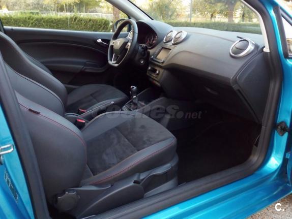 Seat Ibiza 1.4 90cv Fr color Azul del 2016 con tan solo 9.750Km, Nuevo a Estrenar. Modelo exclusivo FR, con botón de modo Sport. - Climatizador bi-zona, con pantalla electrónica. - Faros Bi-xenon direccionales y adaptables en curva - Asientos deportivos en Piel, con detalles rojos en tapicería. - Pantalla Táctil Inteligente de 6 pulgadas, distintos modos de información e interactividad con el vehículo. - Navegador GPS a color programable por voz. - Conectividad Bluetooth, usb, aux, tarjeta SD. - Control y regulador de velocidad. - LLantas en 17 pulgadas FR. - Cierre centralizado. Tiene la Pegatina C de bajas emisiones, Nuevo en todos los aspectos. - Sensores luz y lluvia Siempre en garaje, ni un arañazo.