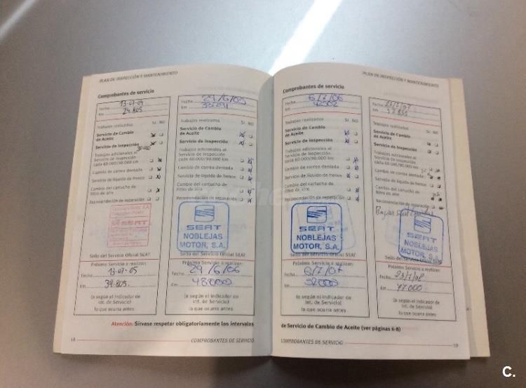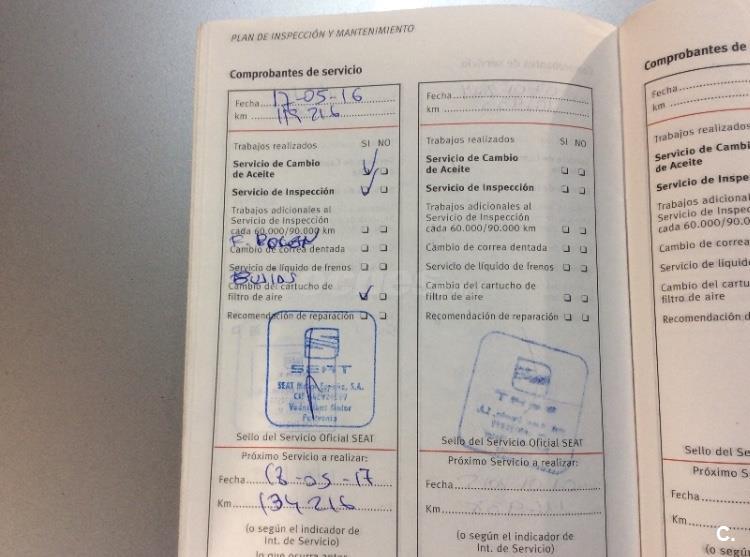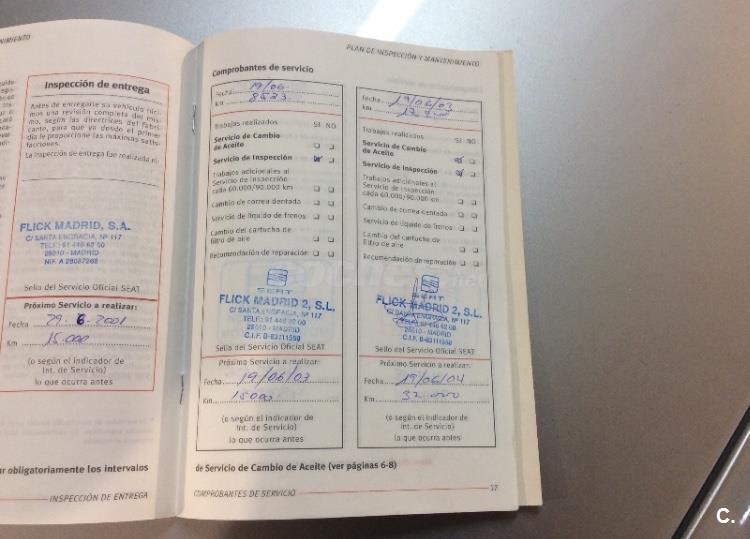 * Libro de mantenimiento sellado en Servicio Oficial Seat.