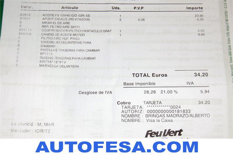EXTRAS:Libro de revisiones, radio CD con MP3, retrovisores eléctricos, AA, 8 airbags, ABS, ordenador de