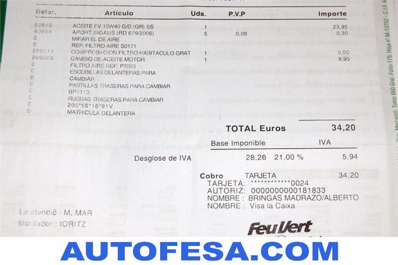 EXTRAS:Libro de revisiones, radio CD con MP3, retrovisores eléctricos, AA, 8 airbags, ABS, ordenador de