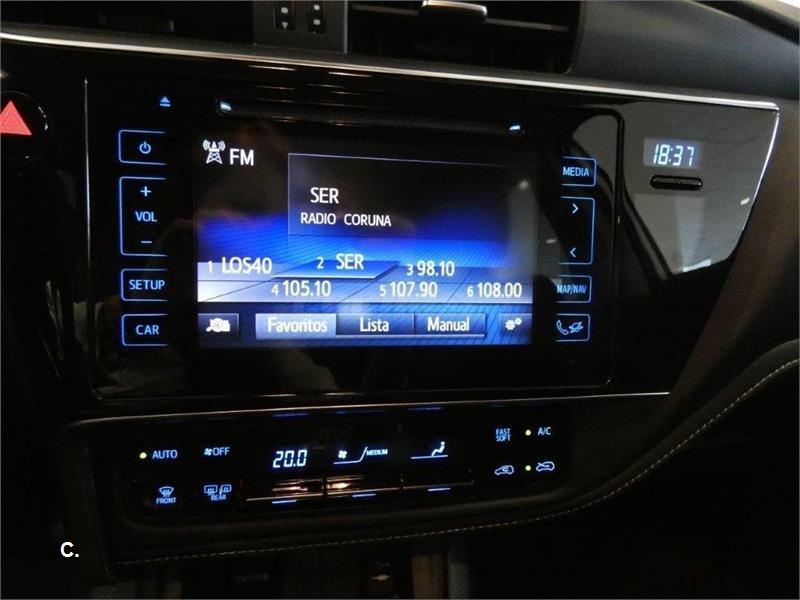 TOYOTA AURIS HIBRIDO acabado ACTIVE + PACK SENSO equipado con maletero de doble fondo, Bluetooth, USB, Pantalla táctil multifunción, elevalunas eléctricos, Sensor de luz y de lluvia, Llantas de aleación de 16" bitono,Ópticas traseras con guía de luz LED, Antena aleta de tiburón, Cámara trasera con guía de aparcamiento, Botón Push Start, Control de Crucero, 7 airbags, ABS, Sistema de Seguridad Precolisión, Asistente de Arranque en Pendiente, Reconocimiento de Señales de Tráfico, control de estabilidad...