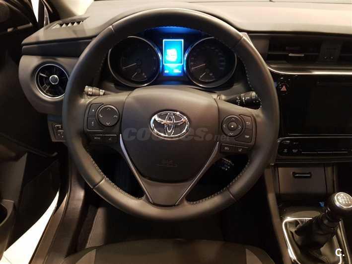 Siguiendo los canones Dursan, te ofrecemos este Toyota Auris que es uno de los vehículos más vendidos de toda Europa, Tanto el exterior como el interior de esta unidad se han rediseñado para ser más atractivos. Por fuera luce nuevas molduras cromadas como las que unen visualmente ambos faros del frontal, una parrilla inferior más ancha, paragolpes de nuevo diseño y voladizos más generosos.