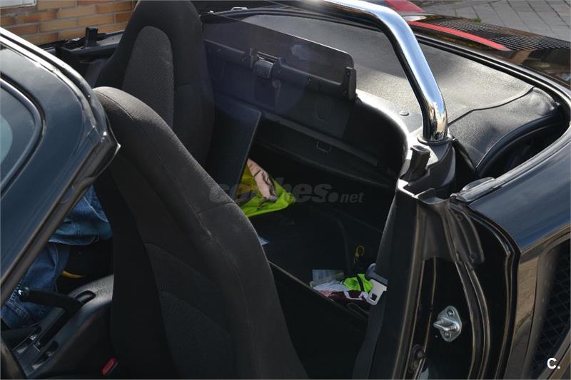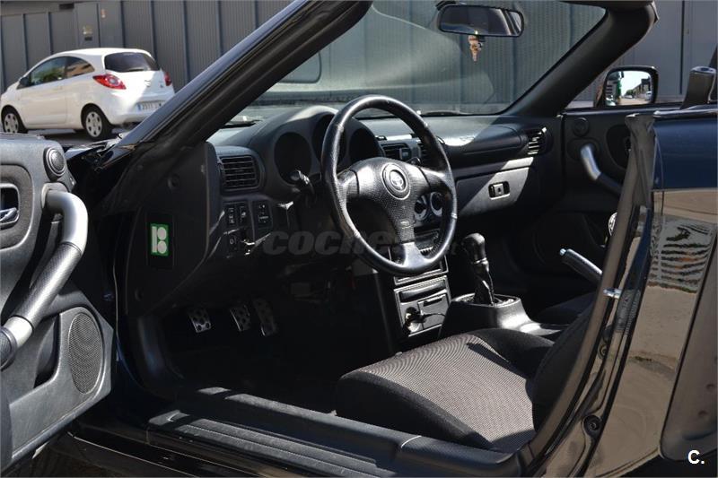 Precioso deportivo negro descapotable biplaza de motor central y tracción trasera, un autentico ROADSTER de manual. Es un coche muy divertido de conducir y muy barato de mantener, de una fiabilidad inigualable. 100% nacional, siempre en garaje. Nunca a tenido averías fuera de lo que es cambiar piezas de desgaste, se le acaban de reconstruir los dos catalizadores con material catalítico de última generación por Iresa Ingenieria, por eso da 0, 0 de gases en la máquina de la ITV, ya que en vez de cumplir Euro4 que le corresponde por fabricación, cumple la última norma Euro6 con los nuevos catalizadores, lo que garantiza mucho tiempo sin problema de gases , los cambie por desgaste de los antiguos, cosa normal con estos km. Nunca accidentes ni bollos, se pinto entero en 2015 por vandalismo, me lo rayaron entero y me rompieron la capota de lona, por lo tanto la capota es nueva y a penas le a dado el sol 4 o 5 veces, ya que no lo suelo usar casi nunca sin Hard Top. A parte de Hard Top(techo