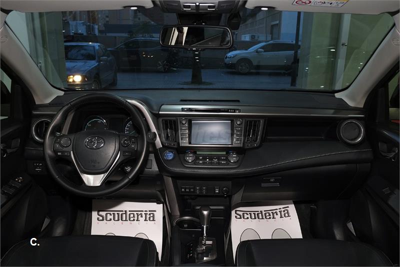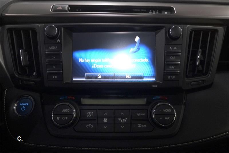 TOYOTA RAV4 HYBRID EXECUTIVE 200H AUTOMATICO (e-CVT) 4X2. VEHICULO NACIONAL. UNICO PROPIETARIO. MATRICULADO EN EL AÑO 2016. GARANTIA HASTA 2019. MARRON EVANO CON INTERIOR EN CUERO NAPA NEGRO Y PESPUNTE BLANCO .TOYOTA TOUCH 2 CON GO+. PANTALLA TACTIL DE 7”. . TELEFONO MANOS LIBRES. CONECTOR AUX-IN. TECHO SOLAR. ASIENTOS ELECTRICOS CON 3 MEMORIAS VENTILADOS Y CALEFACTADOS. PORTON ELECTRICO TRASERO. SISTEMA DE VISION 360º. AVISADOR DE CAMBIO DE CARRIL. CAMRA DE VISION TRASERA. LUCES CON TECNOLIGIA LED. LLANTAS DE ALEACION LIGERA EN 18”. ETC.