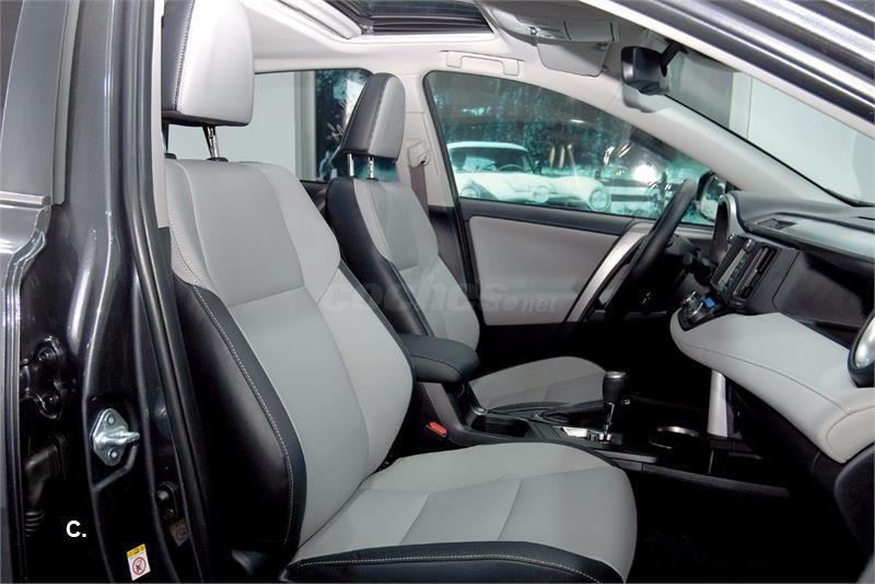 TOYOTA RAV4 HYBRID EXECUTIVE 200H AUTOMATICO (e-CVT) 4X2. VEHICULO NACIONAL. UNICO PROPIETARIO. SOLO 6.000 KM. MATRICULADO EN EL AÑO 2017. GARANTIA HASTA 2020. GRIS GRAFITO CON INTERIOR EN CUERO NAPA GRIS.TOYOTA TOUCH 2 CON GO+. PANTALLA TACTIL DE 7”. SISTEMA DE SONIDO PREMIUM JBL CON 11 ALTAVOCES. TELEFONO MANOS LIBRES. CONECTOR AUX-IN. TECHO SOLAR. ASIENTOS ELECTRICOS CON 3 MEMORIAS VENTILADOS Y CALEFACTADOS. PORTON ELECTRICO TRASERO. SISTEMA DE VISION 360º. AVISADOR DE CAMBIO DE CARRIL. CAMRA DE VISION TRASERA. LUCES CON TECNOLIGIA LED. LLANTAS DE ALEACION LIGERA EN 18”. ETC..